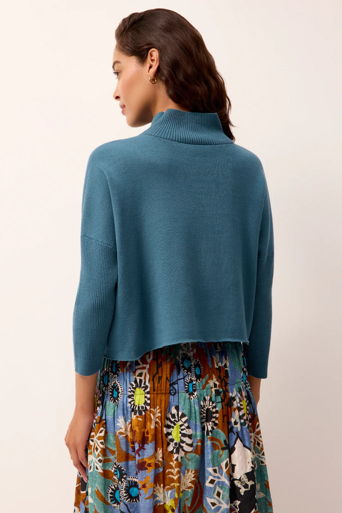 -Boxy, cropped fit through body with fitted 3/4 sleeves