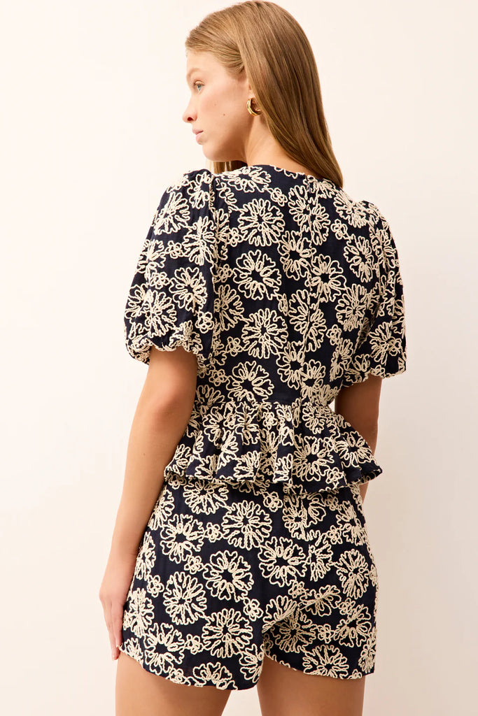 - 85% viscose / 12% linen / 3% lyocell thread with embroidery stitch detail